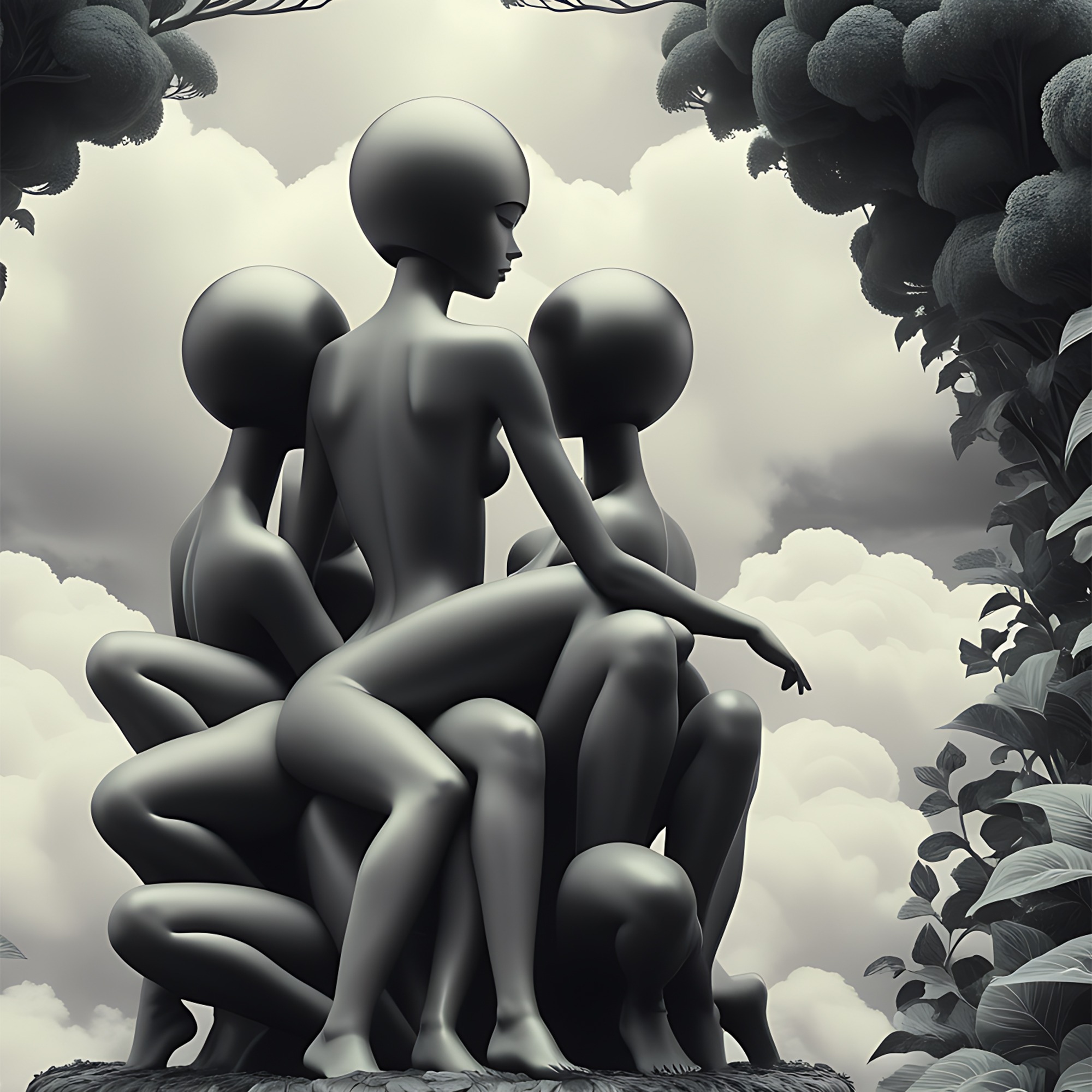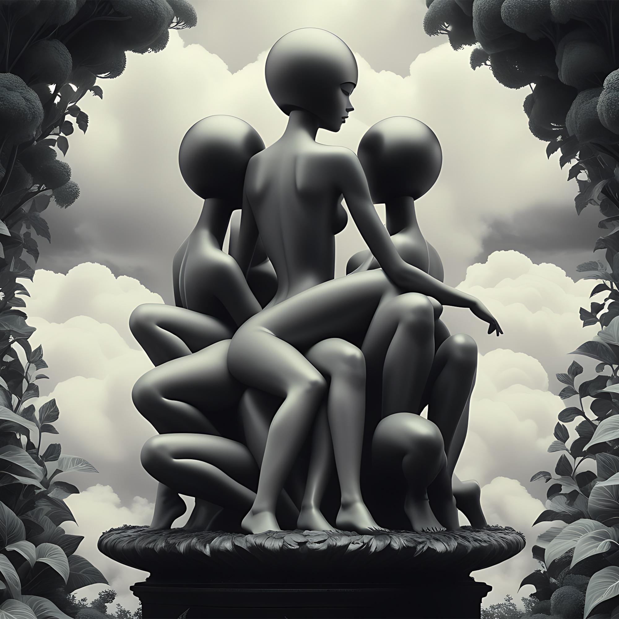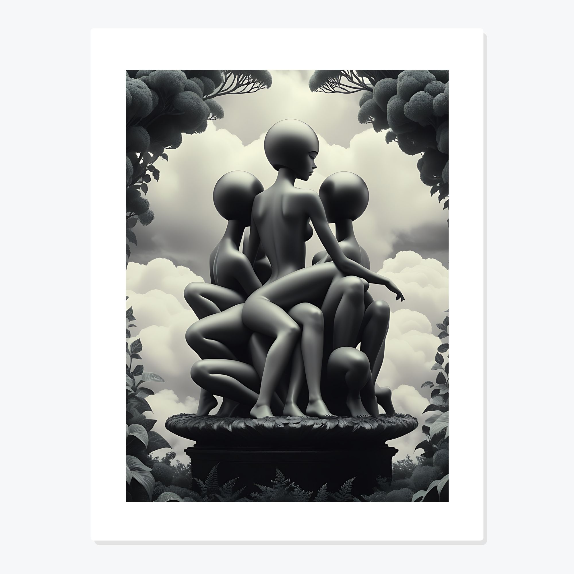 „Impreună” este o capodoperă în alb și negru din colecția Babel Noir, care transcede granițele individuale și conturează o uniune sacrală a corpului uman. Această compoziție impresionantă plasează corpuri și membre umane nedefinite pe un piedestal sub o ramă de verdețuri din inima pădurii.