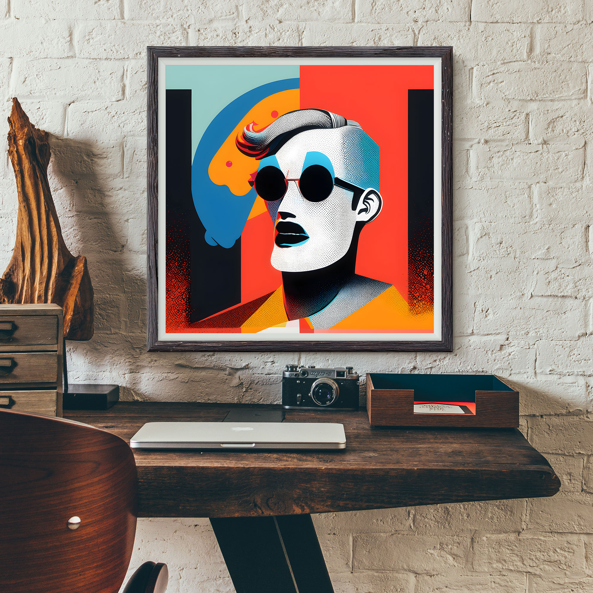 Contururile îndrăznețe și detaliile definitorii tipice pop art-ului conferă tabloului o notă modernă și distinctivă. Aceste trăsături artistice subliniază nu doar momentul în sine, ci și importanța și impactul creativității în viața artistului.