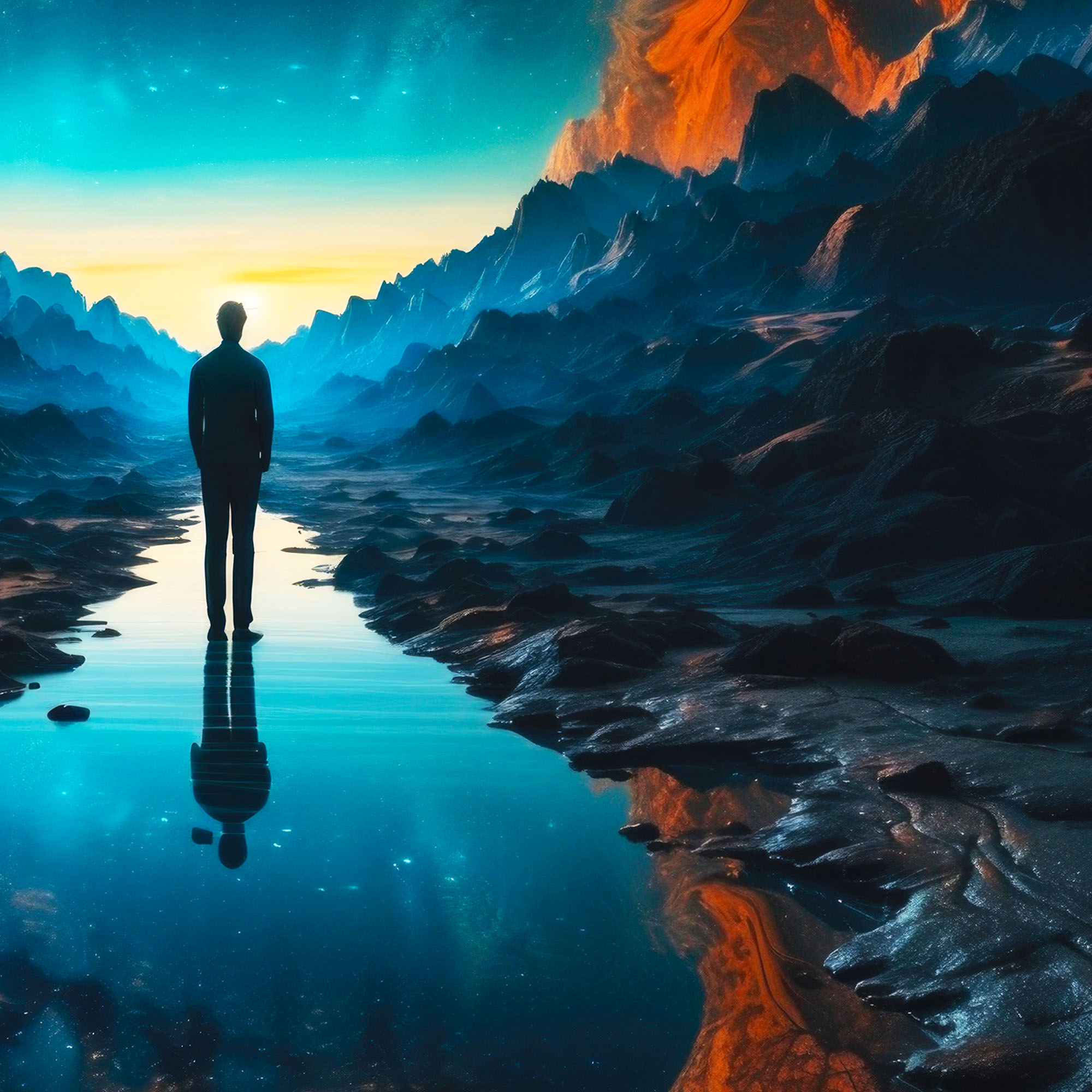 În „Manifestare”, conceptul de voință umană este ilustrat într-un mod captivant și profund. Universul se contorsionează în jurul dorinței umane, transformând-o în realitate într-un dans fascinant al formelor și culorilor.