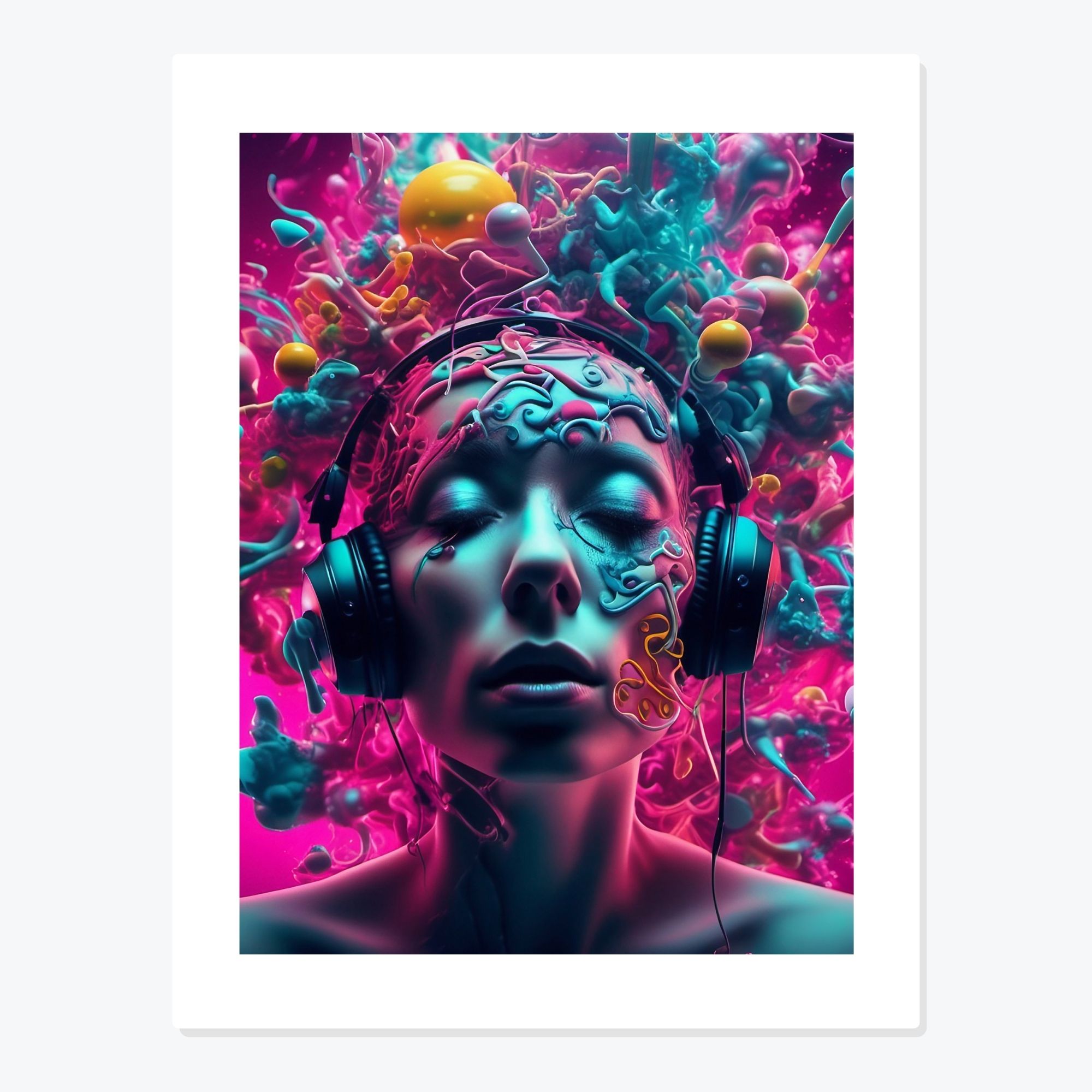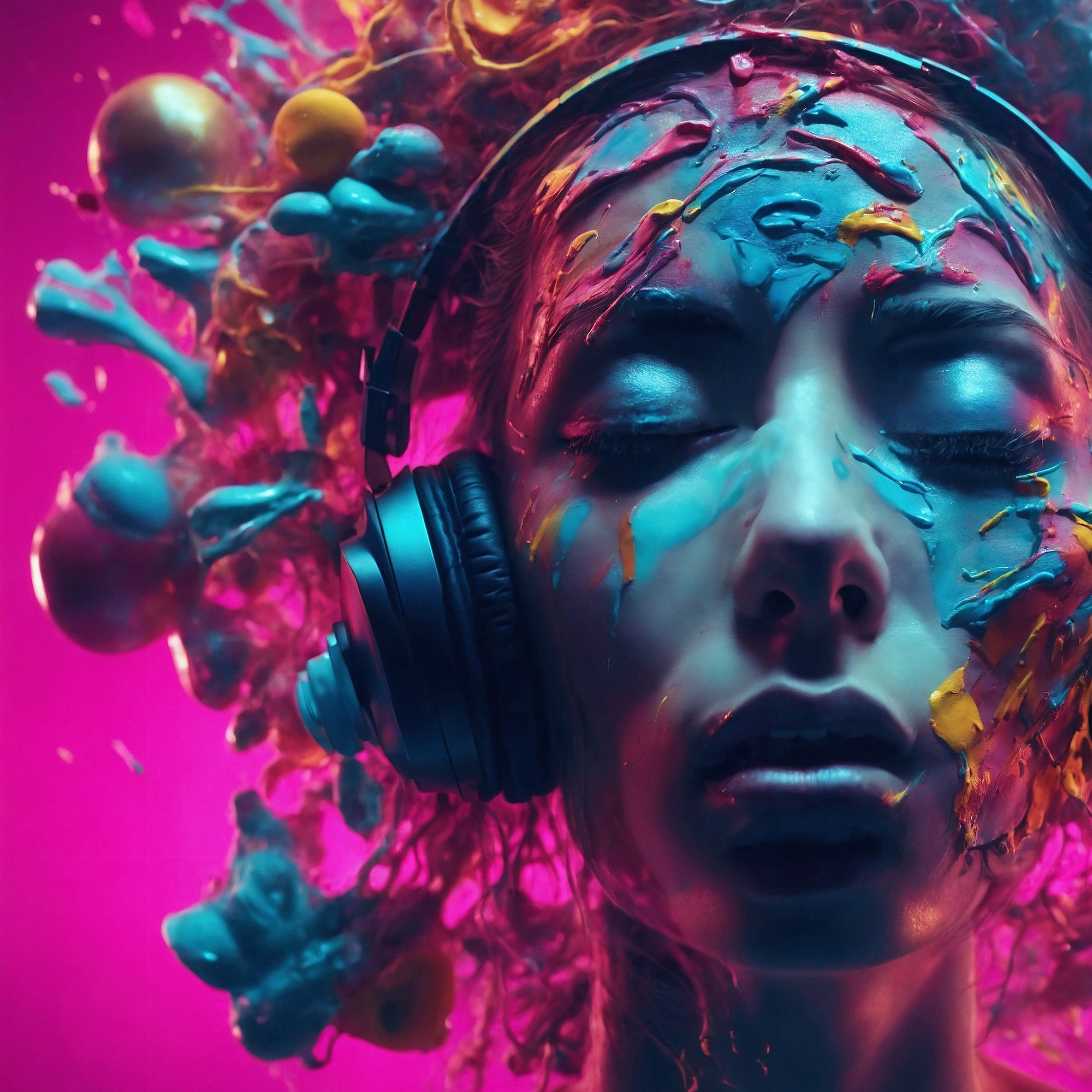 Fața fetei este centrul atenției, fiind înconjurată de explozia de forme și culori, sugerând că aceasta este în mijlocul unei experiențe sonore intense. Expresia feței poate să reflecte bucurie, contemplare sau extaz în fața acestei călătorii muzicale.