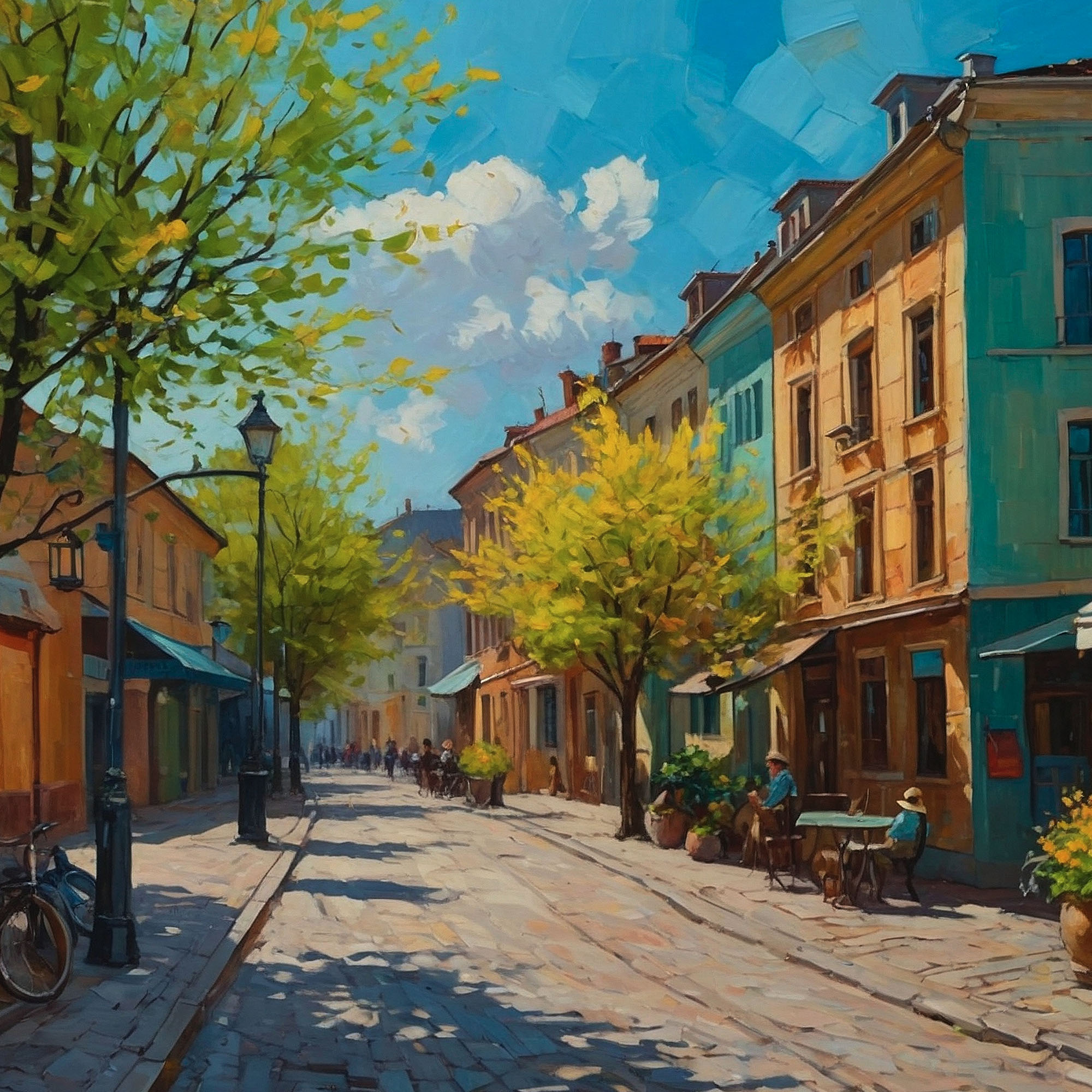 „Primăvara în Oraș: Străzi Însorite și Caféle Îmbietoare”