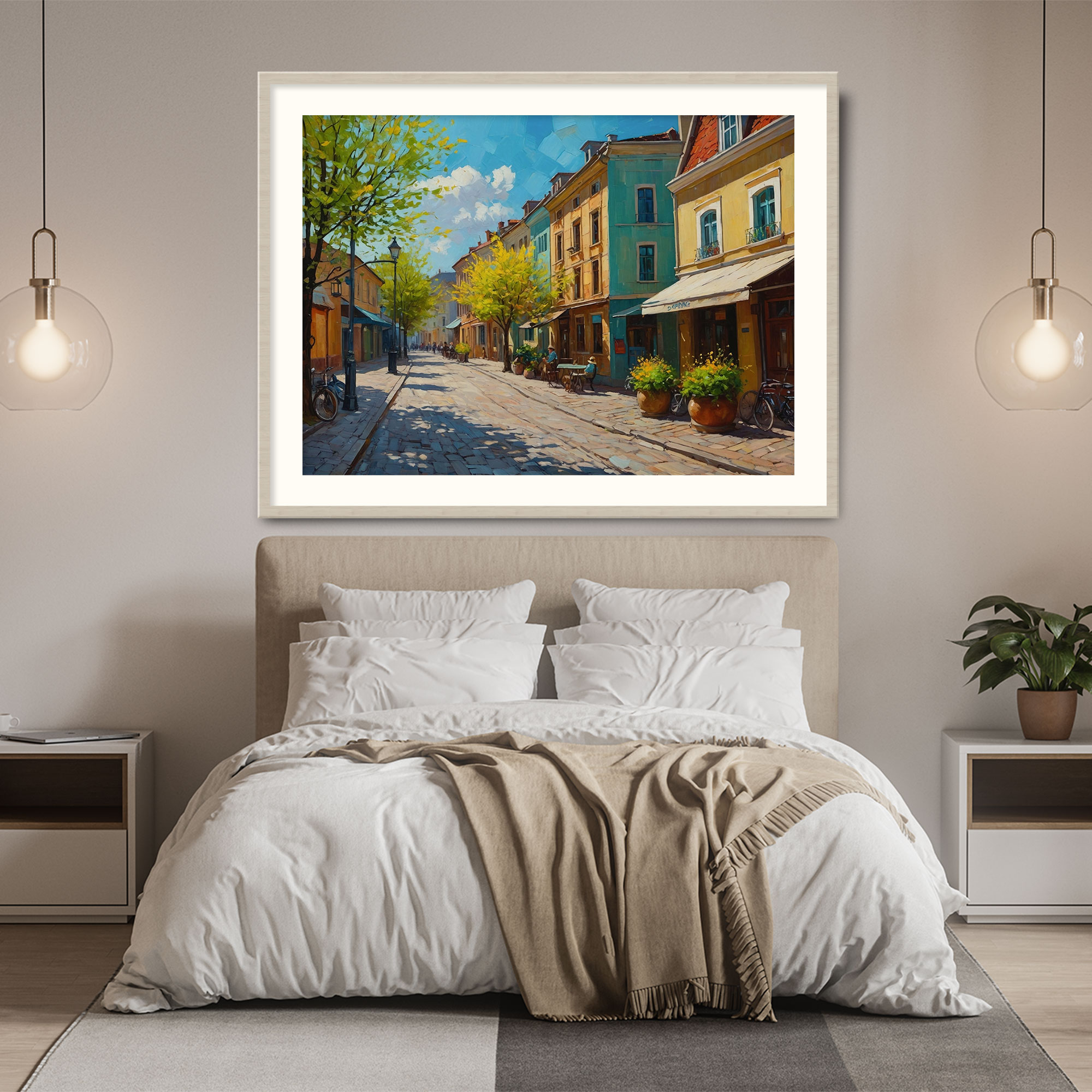 Cu o mână pricepută și o paletă vibrantă, acest tablou surprinde energia și optimismul primăverii în inima orașului. Fiecare perete colorat, fiecare geam strălucitor îți povestește o altă parte a acestei lumi urbane pline de viață.
